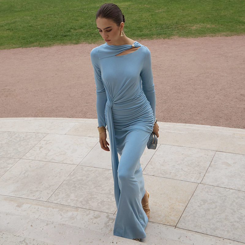 Slim fit pleated long-sleeved dress