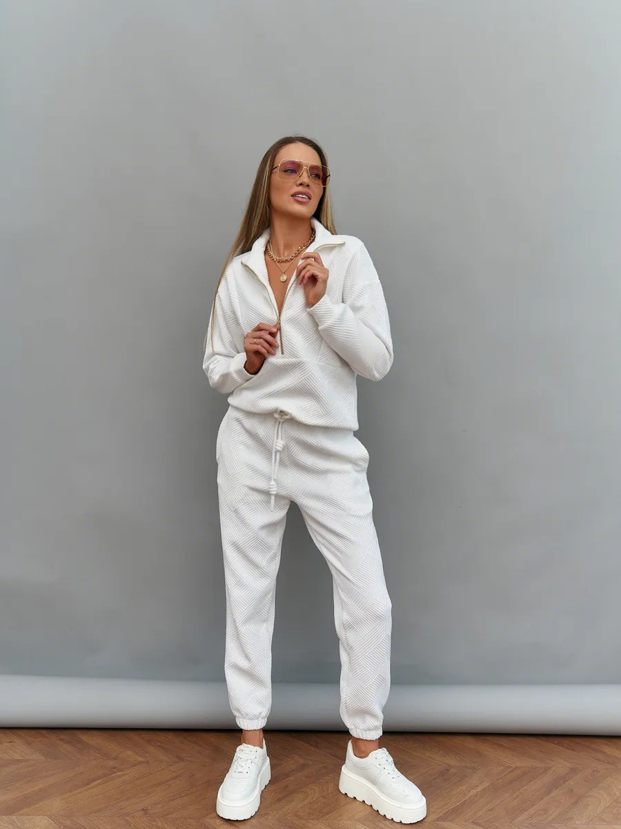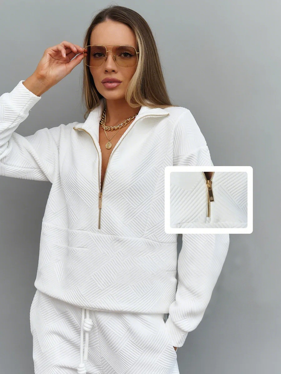 Solid color long sleeved zipper loose top lace up trousers