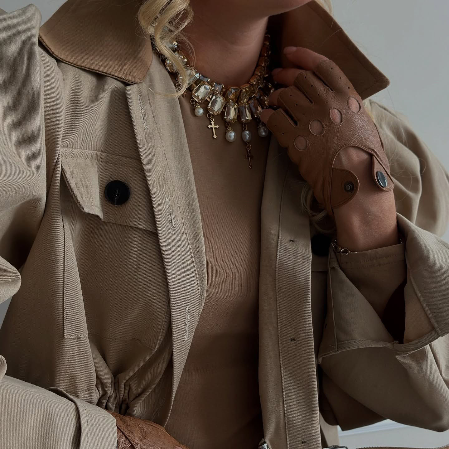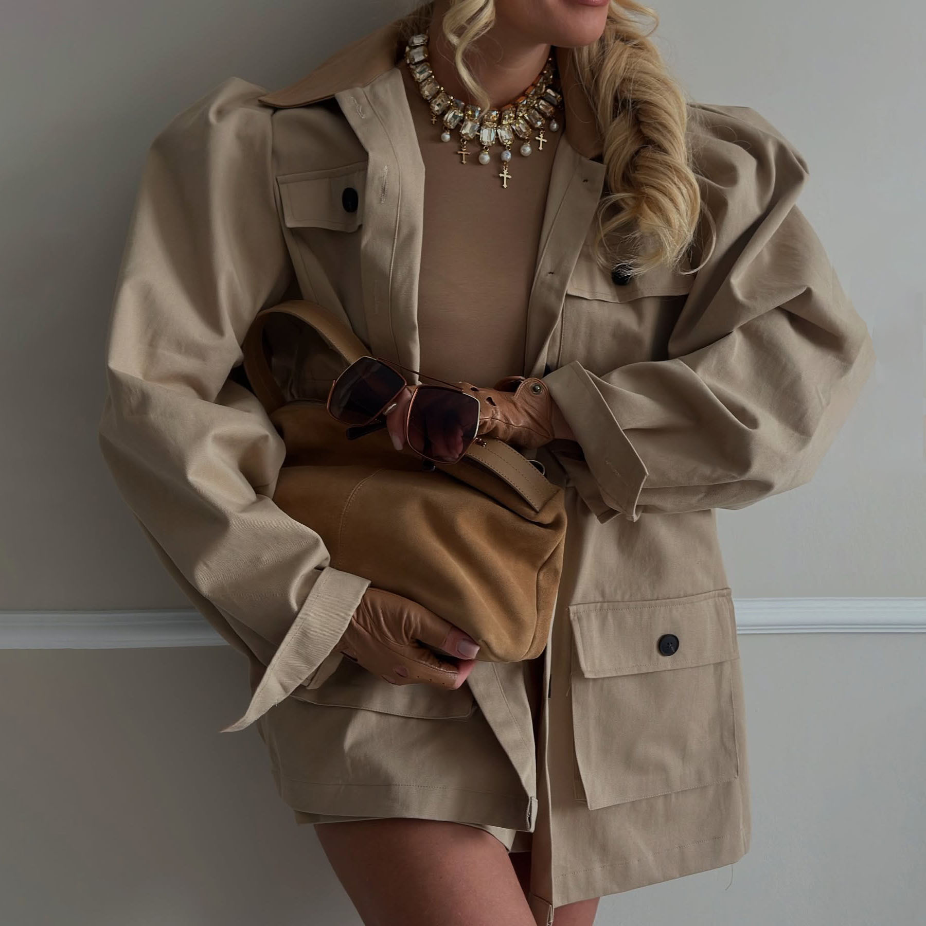 Stand up collar multi-pocket design cocoon waist jacket
